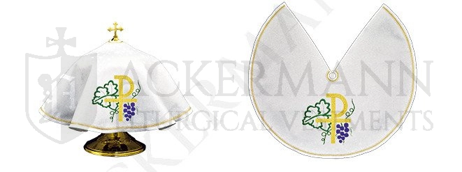 Vierarmiges Pergamentziborium aus schneeweißem Stoff, schmutzabweisende Materialien von höchster Qualität.