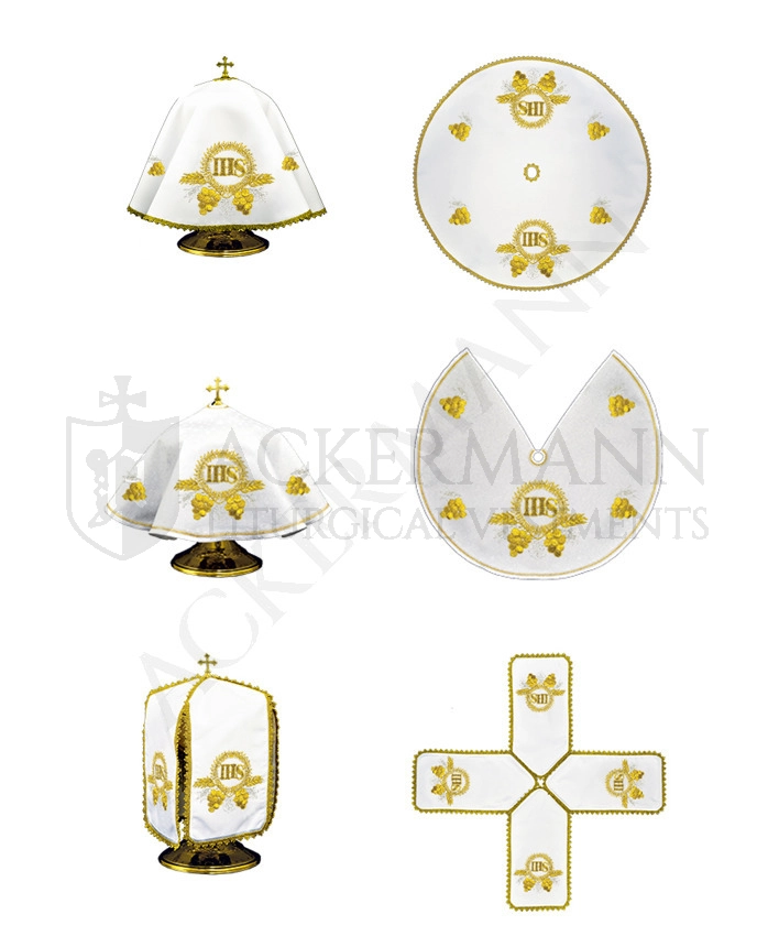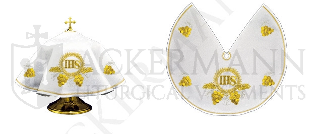 Vierarmiges Pergamentziborium aus schneeweißem Stoff, schmutzabweisende Materialien von höchster Qualität.