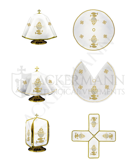 Vierarmiges Pergamentziborium aus schneeweißem Stoff, schmutzabweisende Materialien von höchster Qualität.