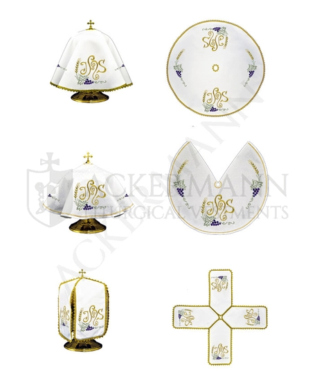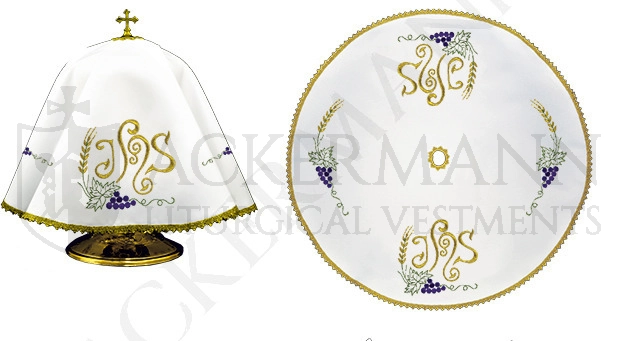 Vierarmiges Pergamentziborium aus schneeweißem Stoff, schmutzabweisende Materialien von höchster Qualität.