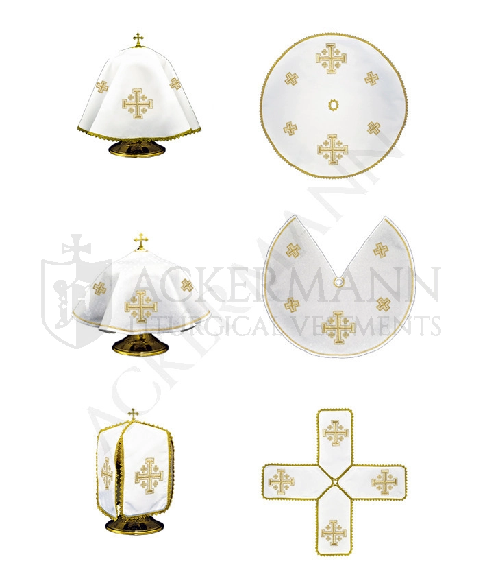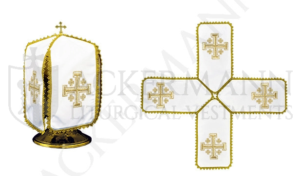 Vierarmiges Pergamentziborium aus schneeweißem Stoff, schmutzabweisende Materialien von höchster Qualität.