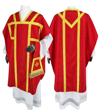 The "St. Philip Neri" style chasuble with matching roman dalmatic