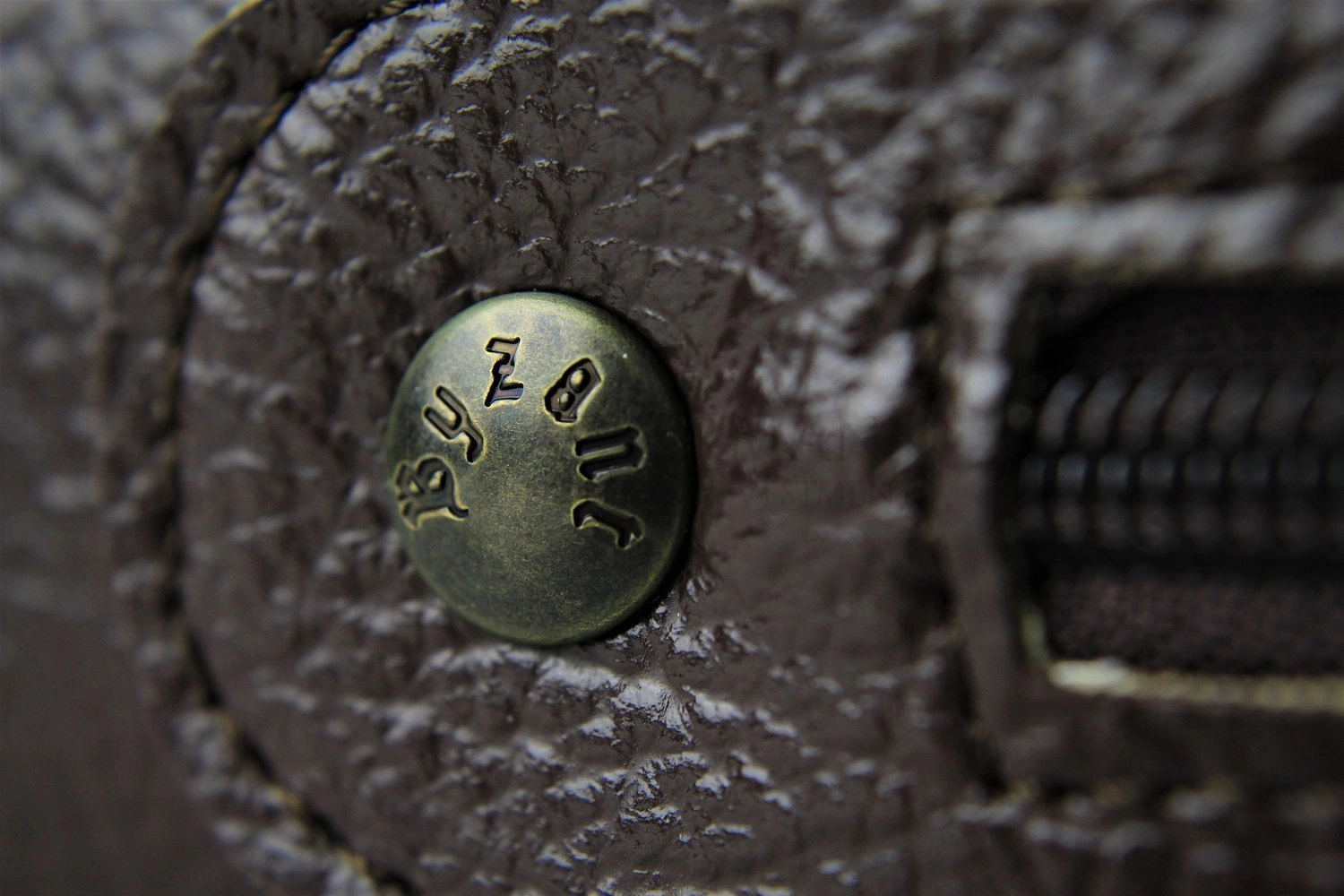 Bestickte Schriftkiste aus Öko-Leder.