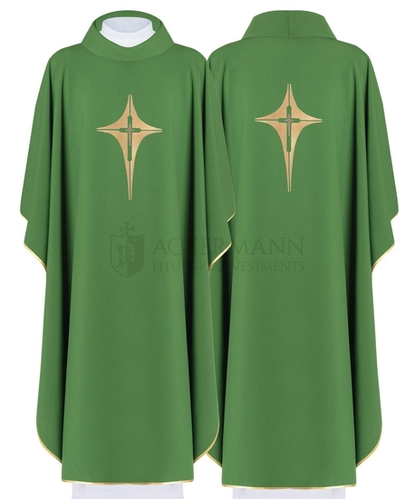 Die Kasel besteht aus 100% hochwertigem Polyester ist knitterarm, strapazierfähig