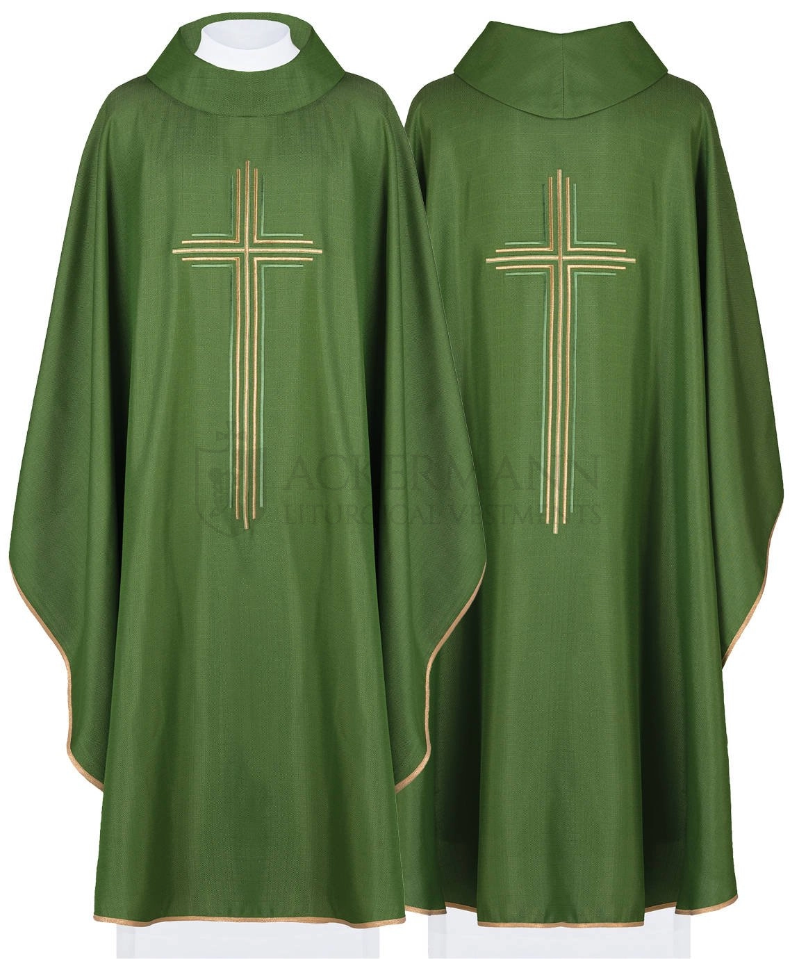 Die Kasel besteht aus 100% hochwertigem Polyester ist knitterarm, strapazierfähig