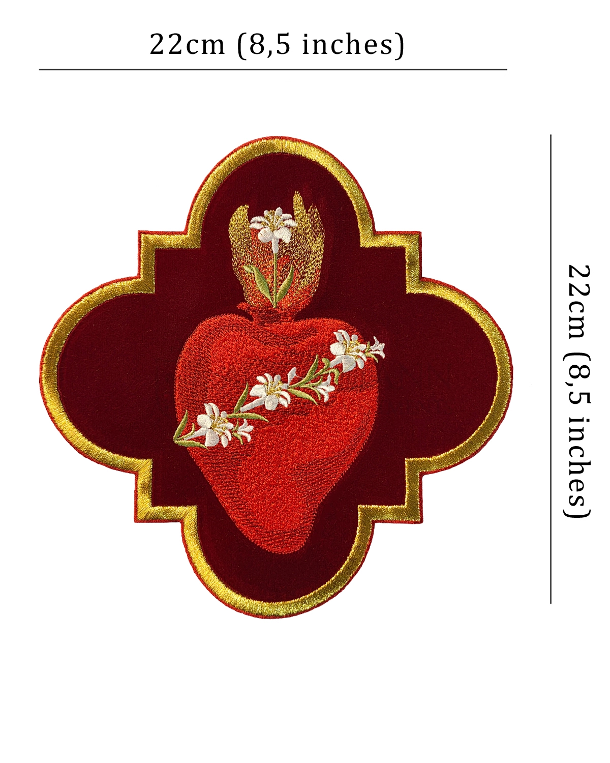 Embroidered Applique Height: 22 cm (8.6 inch) Width: 22 cm (8,6 inch) Applique made with attention to the finest details of embroidery. Applique is ideal for sewing on chasubles, banners or for creating original sacral decorations.