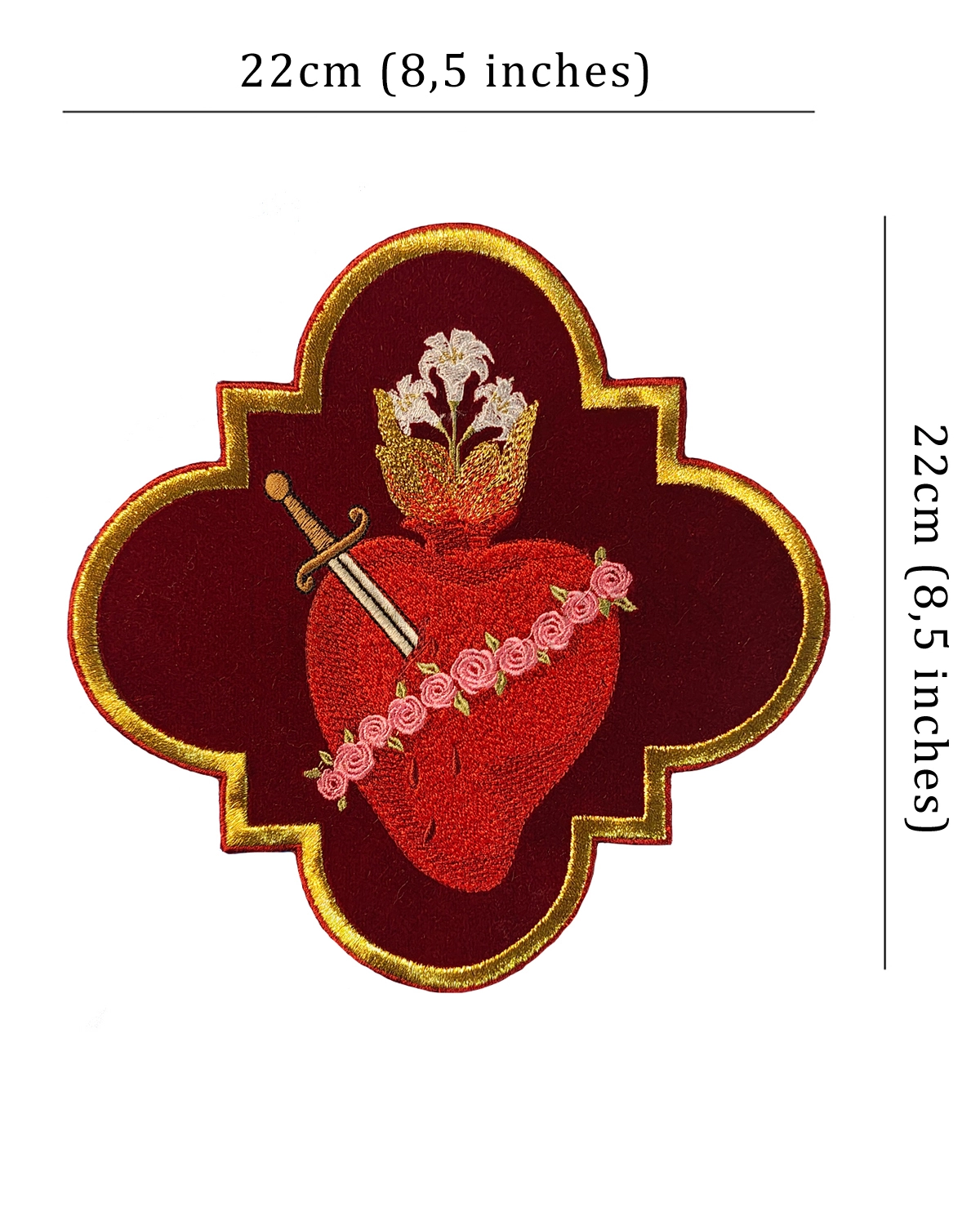 Embroidered Applique Height: 22 cm (8.6 inch) Width: 22 cm (8,6 inch) Applique made with attention to the finest details of embroidery. Applique is ideal for sewing on chasubles, banners or for creating original sacral decorations.