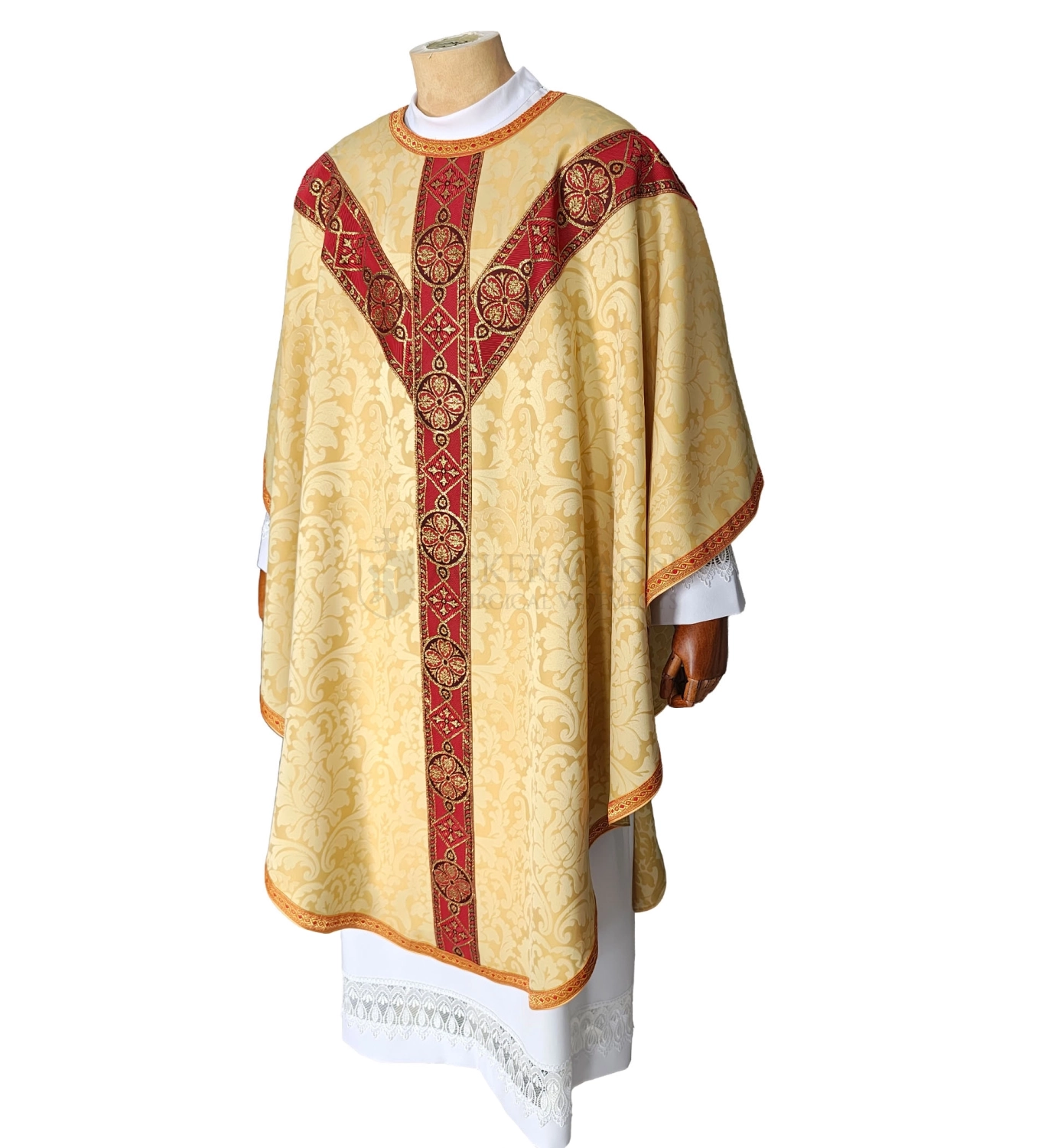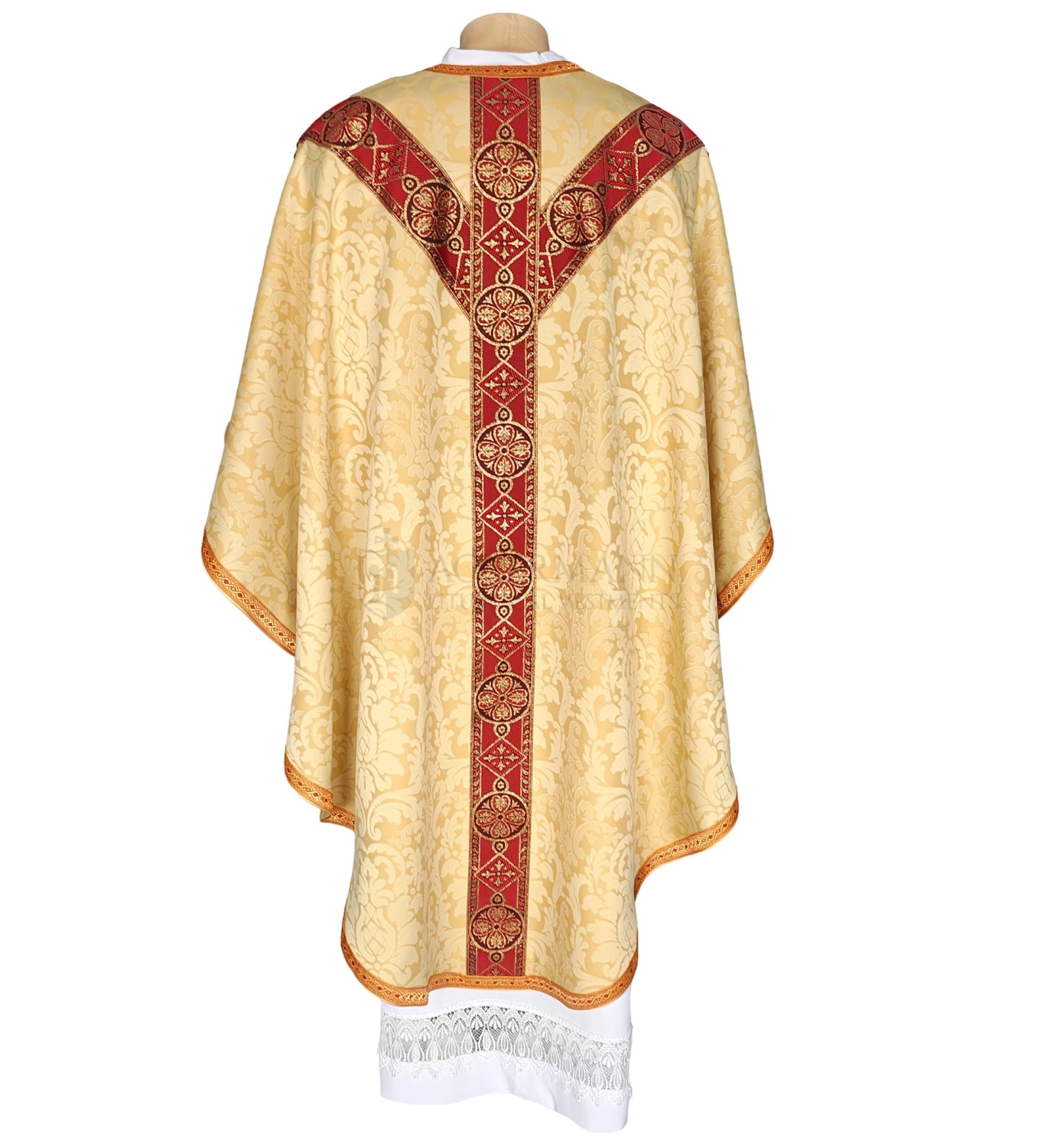 Das Material ist sehr angenehm zu tragen. Das Gewicht der Kasel beträgt nur etwa 700 Gramm