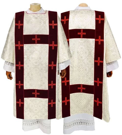 Die Dalmatik ist in verschiedenen Größen erhältlich. Überprüfen Sie die Größentabelle unter den Größenoptionen.