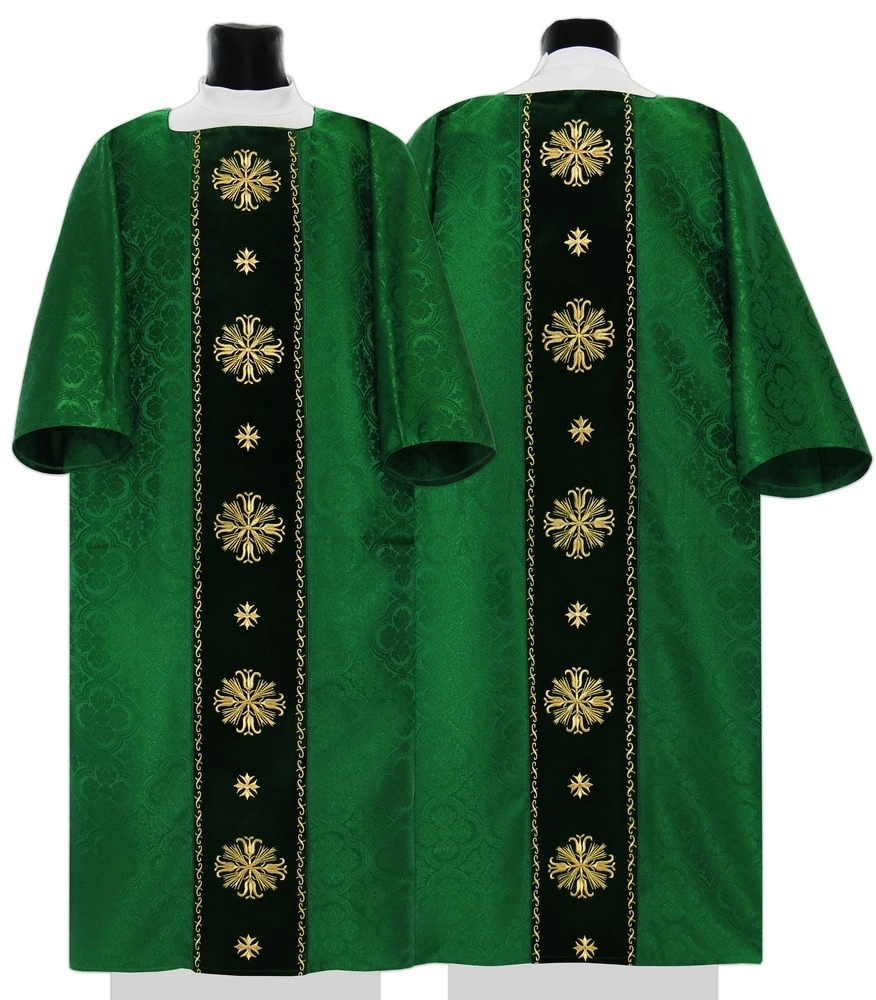 Gotische Dalmatik mit passender Diakonstola Wir bieten hochwertige, leicht zu reinigende Stoffe (mit 40° waschbar) und hervorragende Verarbeitung. Die Verarbeitungsqualität wird die anspruchsvollsten Kunden zufrieden stellen, was durch die Meinungen unserer Kunden bestätigt wird. Waschanleitung: Waschen max. bei 40 oC. Farbwaschmittel verwenden, nicht bleichen. Handwäsche empfohlen. NICHT IM TROCKNER TROCKNEN!